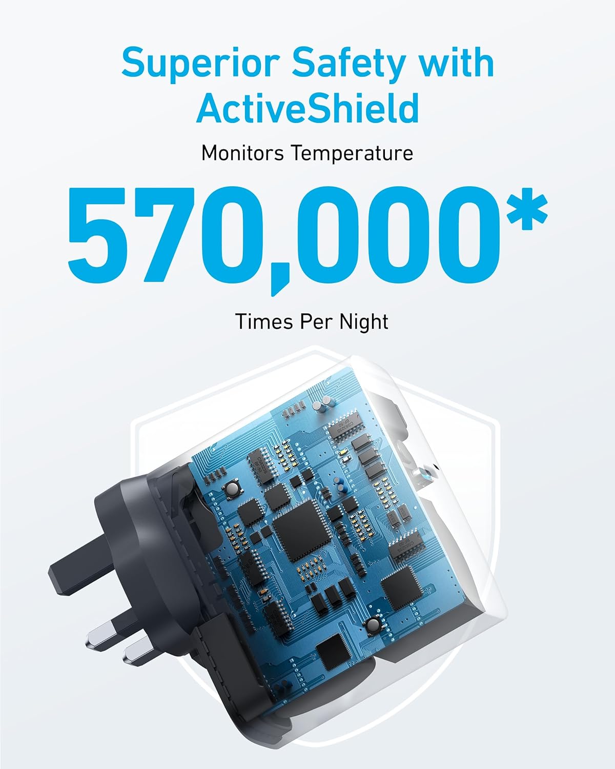- Prioritizing Safety: Our unique ActiveShield safety technology offers continuous temperature monitoring, guaranteeing a secure charging experience for you and your devices.