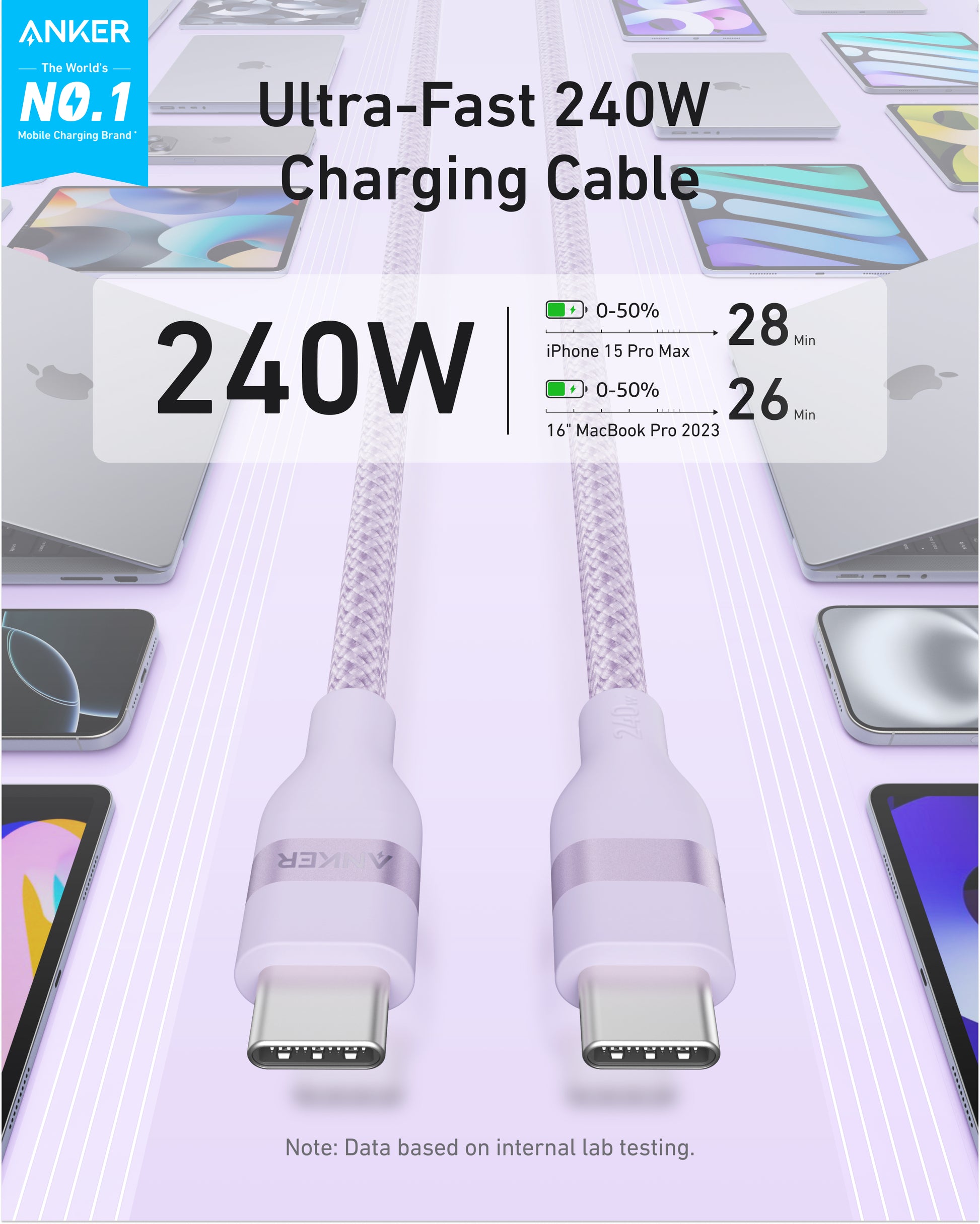 - Super-Fast 240W Cable: This 240W USB-IF certified cable can charge your 16-inch MacBook Pro (2023) to 50% in just 28 minutes or your iPhone 15 Pro to 50% in 26 minutes.