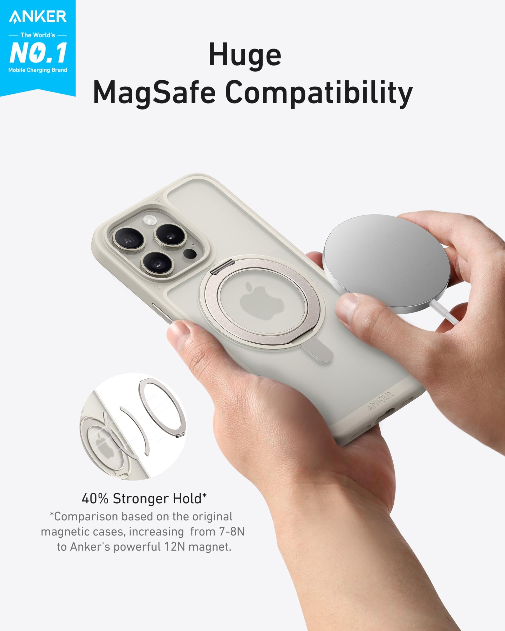 Anker MagGo Magnetic Case with Stand (360° Ring Stand, For iPhone)-Black Stone-iPhone 16