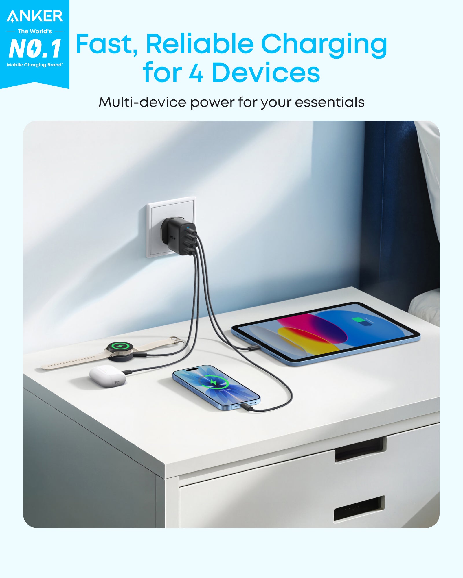 What You Get: Anker Zolo Charger (50W, 4 Ports), hassle-free warranty, welcome guide, and our friendly customer service.