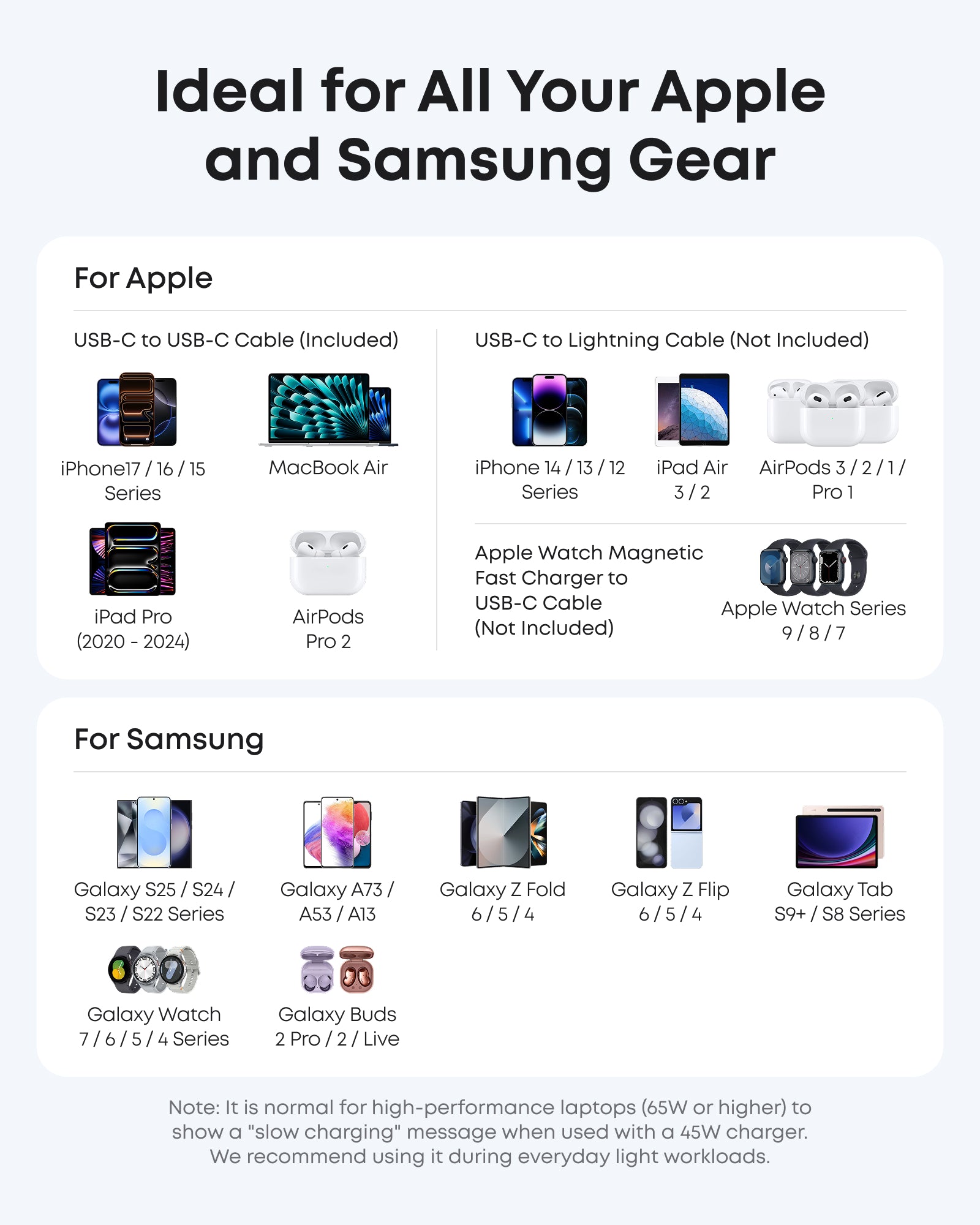 - Quick Power Boost: Harness the speed of SamsungSuper Fast Charging for all compatible Samsung devices, powered by advanced GaN technology-perfect for quick energy boosts.