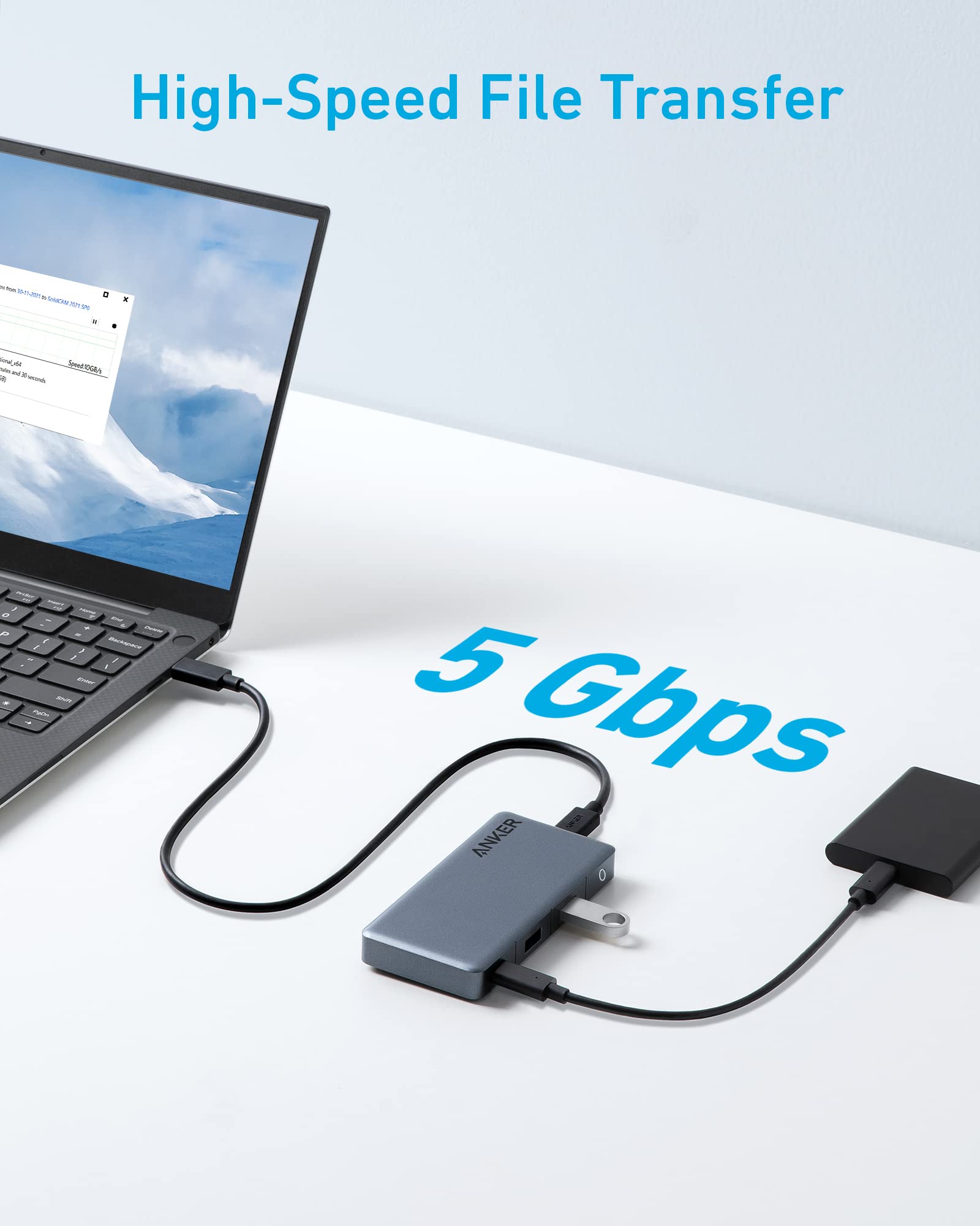 - Transfer Files in Seconds: Move files to and from your laptop at speeds of up to 5 Gbps via the USB-C and USB-A data ports.