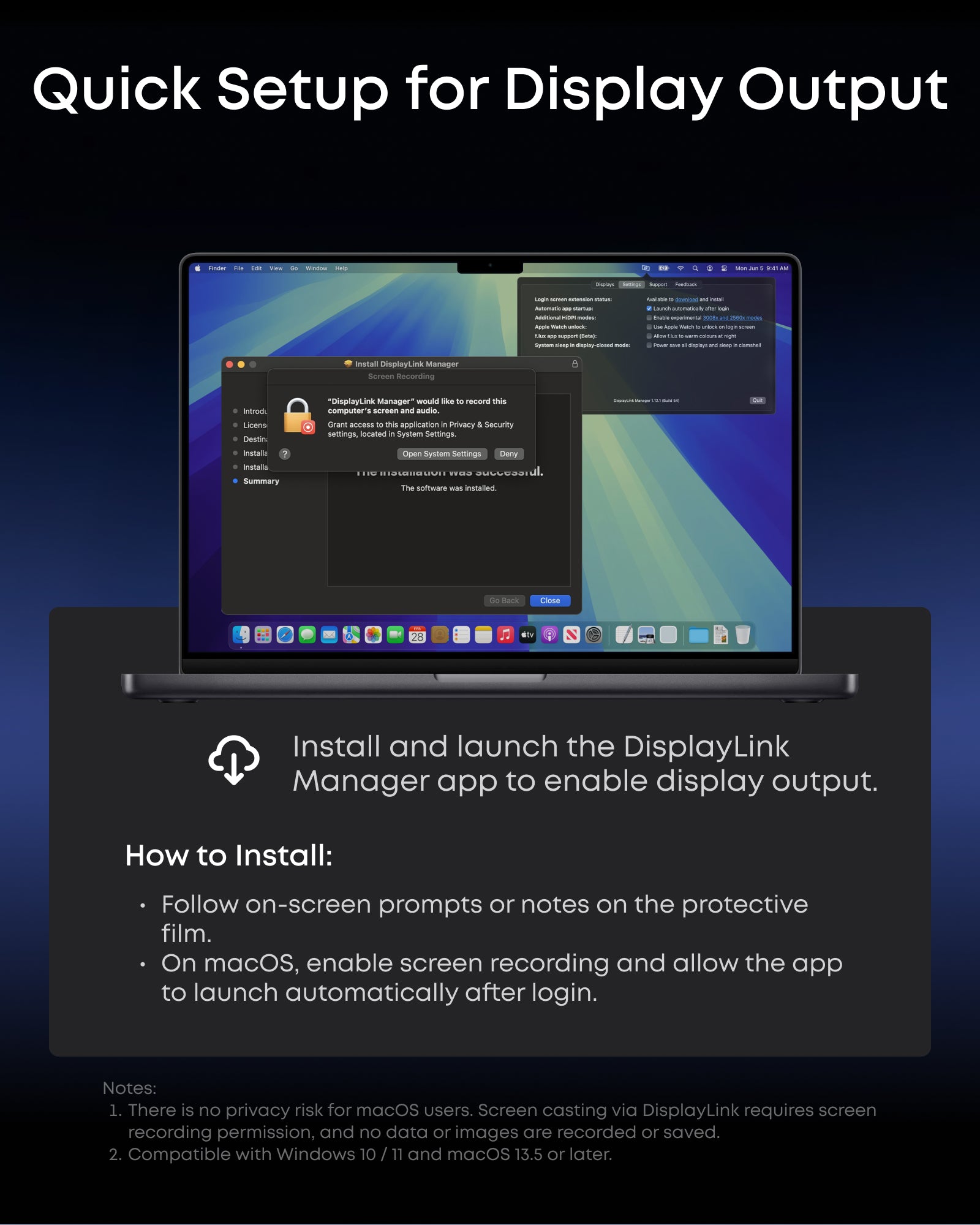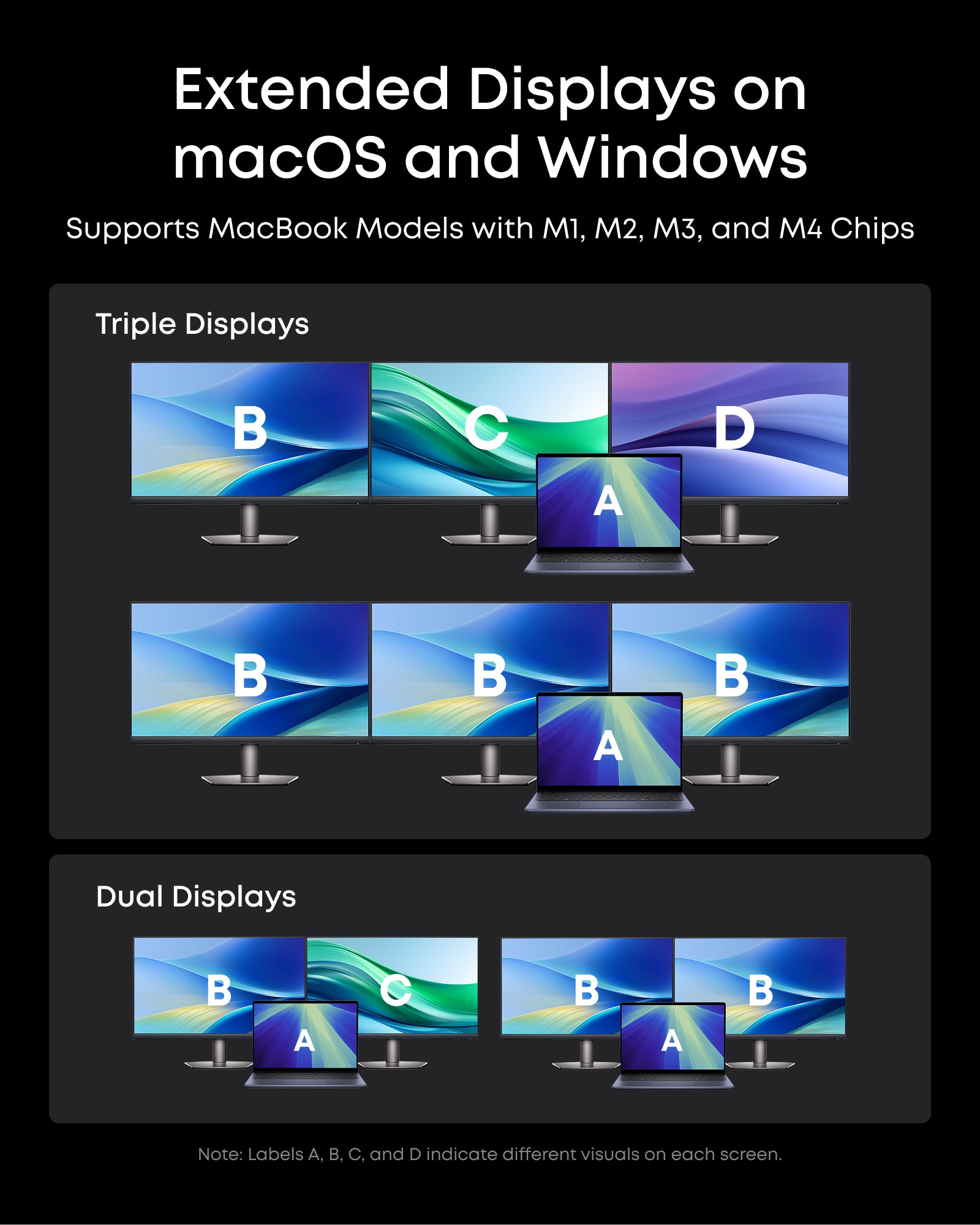 - One 8K Output, Triple Display Versatility: Power up three external monitors at once, including one in 8K, for ultra-efficient multitasking. Compatible with both macOS and Windows setups. (Note: Only monitors that support 8K resolution can display in 8K. DisplayLink driver required.)