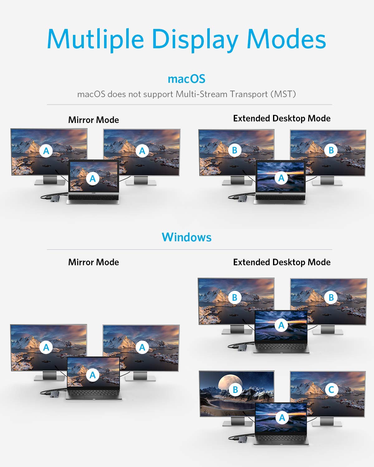 - Multi-Monitor Display: The HDMI port and the DisplayPort both support a single-monitor display of up to 4K@60Hz. Connect to both simultaneously to enjoy crystal-clear streaming or mirroring across 2 displays at up to 2K@60Hz.