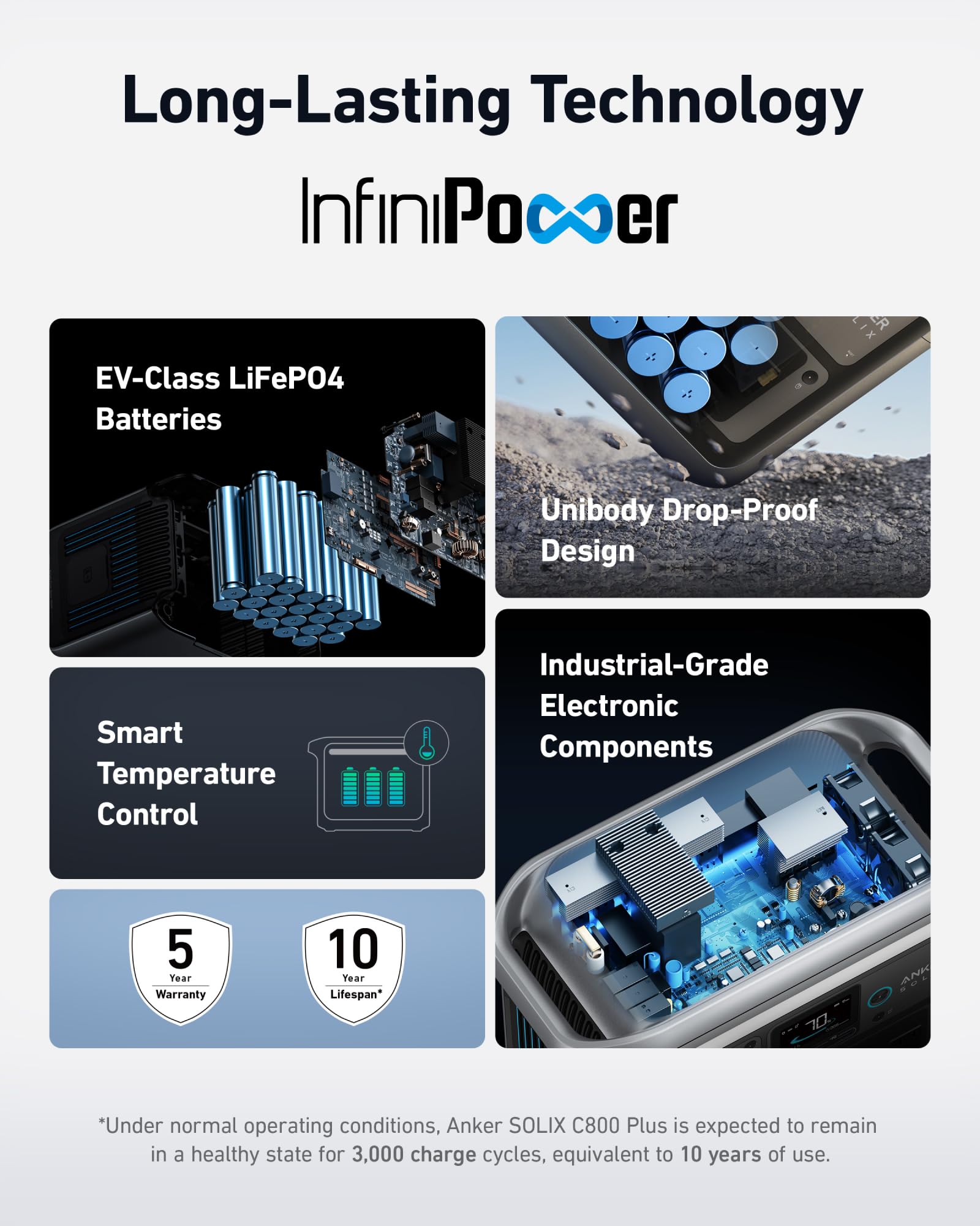 - Power Every Day for 10 Years: Thanks to InfiniPower technology, power every day for a decade. These batteries last 6× longer than other brands with over 3,000 cycles.