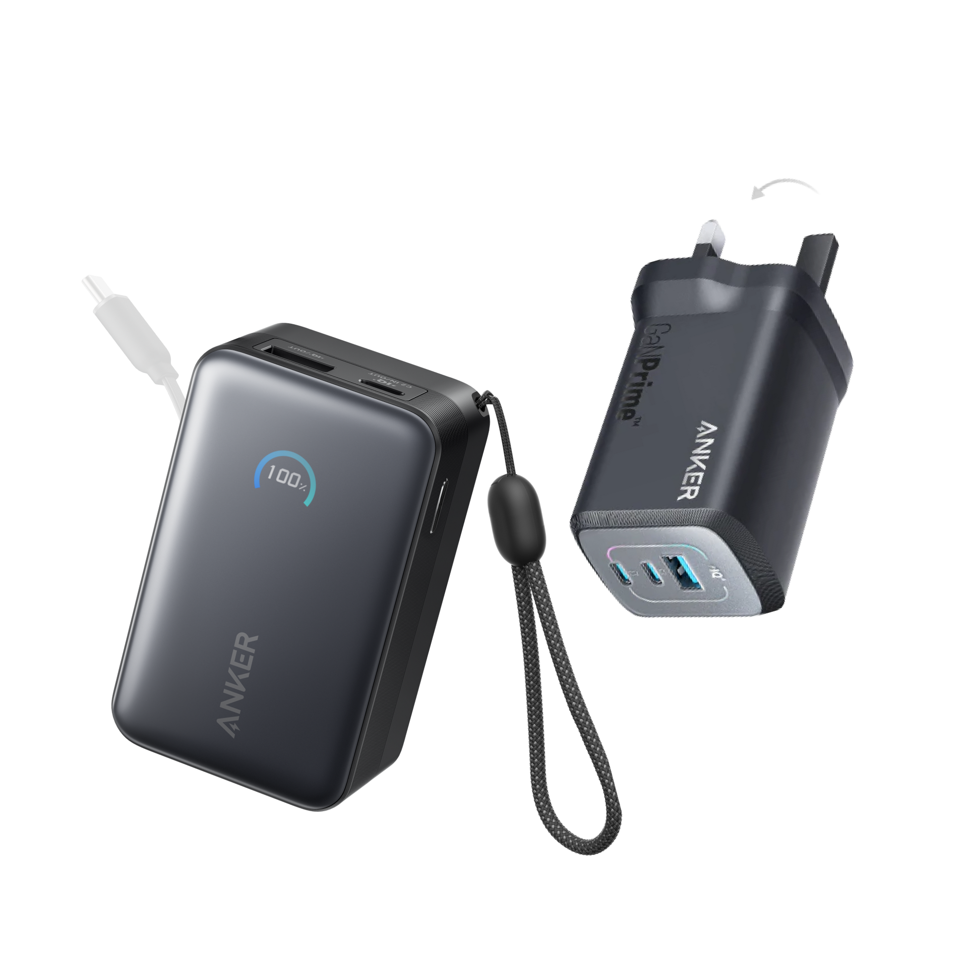 Anker Nano Power Bank (10K, 45W, Built-In Retractable USB-C Cable) + Anker Prime 100W GaN Charger (3 Ports)
