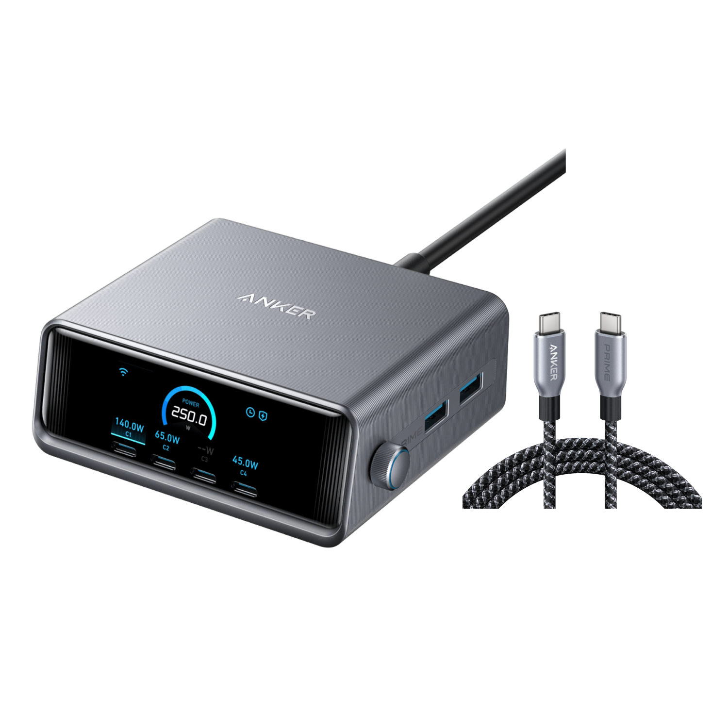 Anker Prime Charger (250W, 6 Ports, GaNPrime) and USB-C to USB-C Cable (240W, Upcycled-Braided)