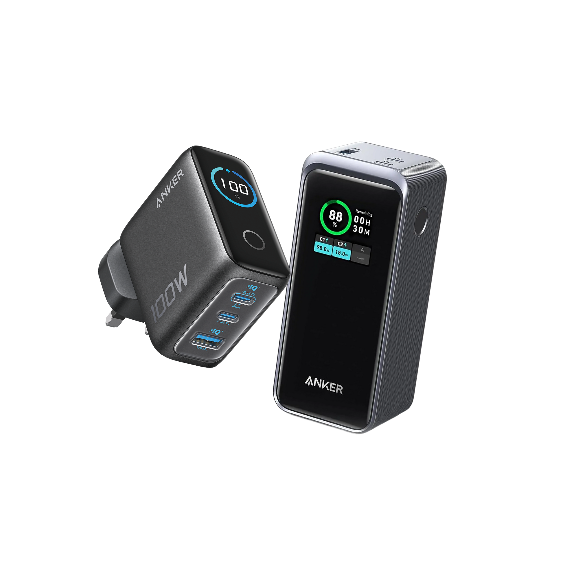 Anker Charger (100W, 3 Ports, Smart Display) + Anker Prime 20,000mAh Power Bank (200W)